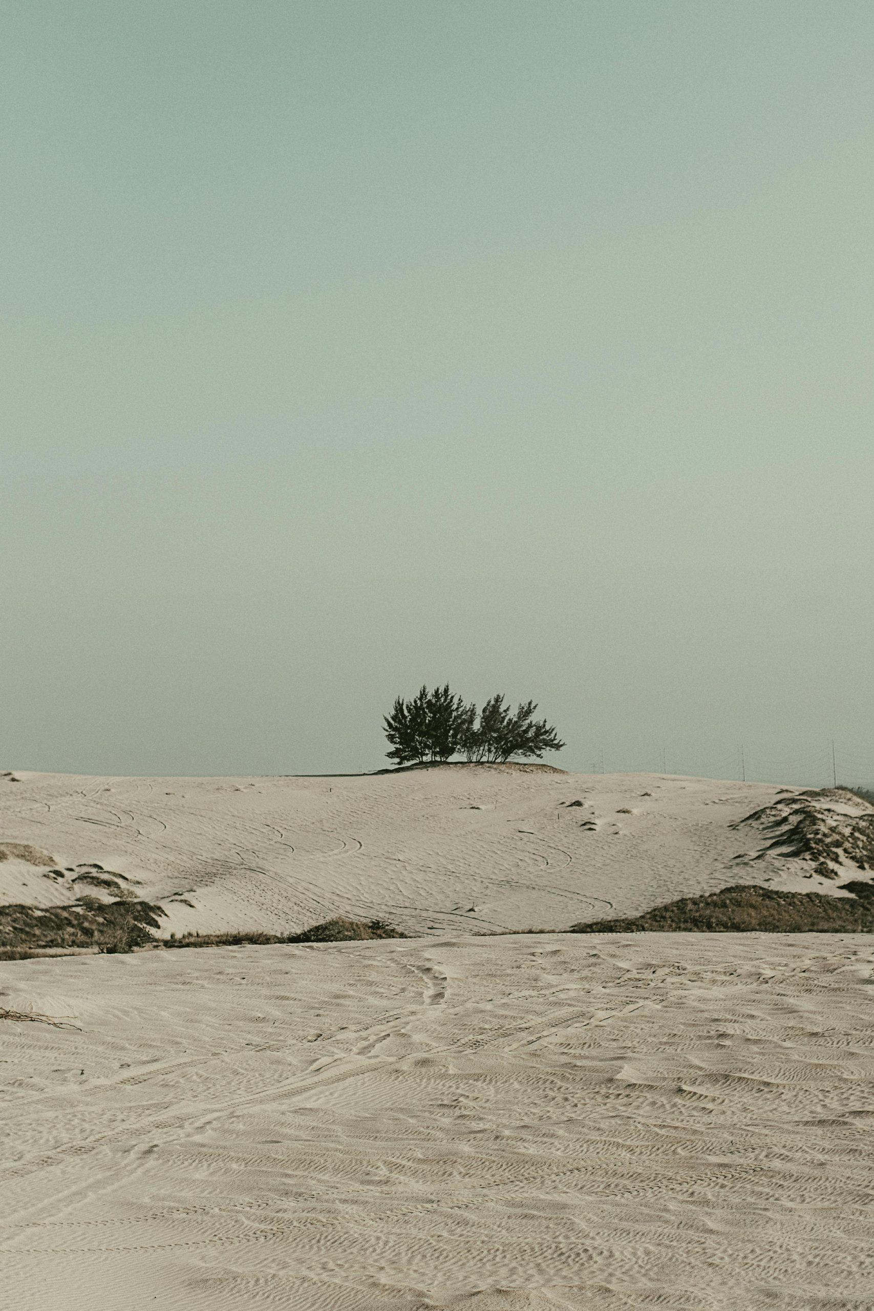 A Tranquil Desert Scene Featuring Sparse Trees Under A Clear Sky, Ideal For Serene And Minimalist Themes.