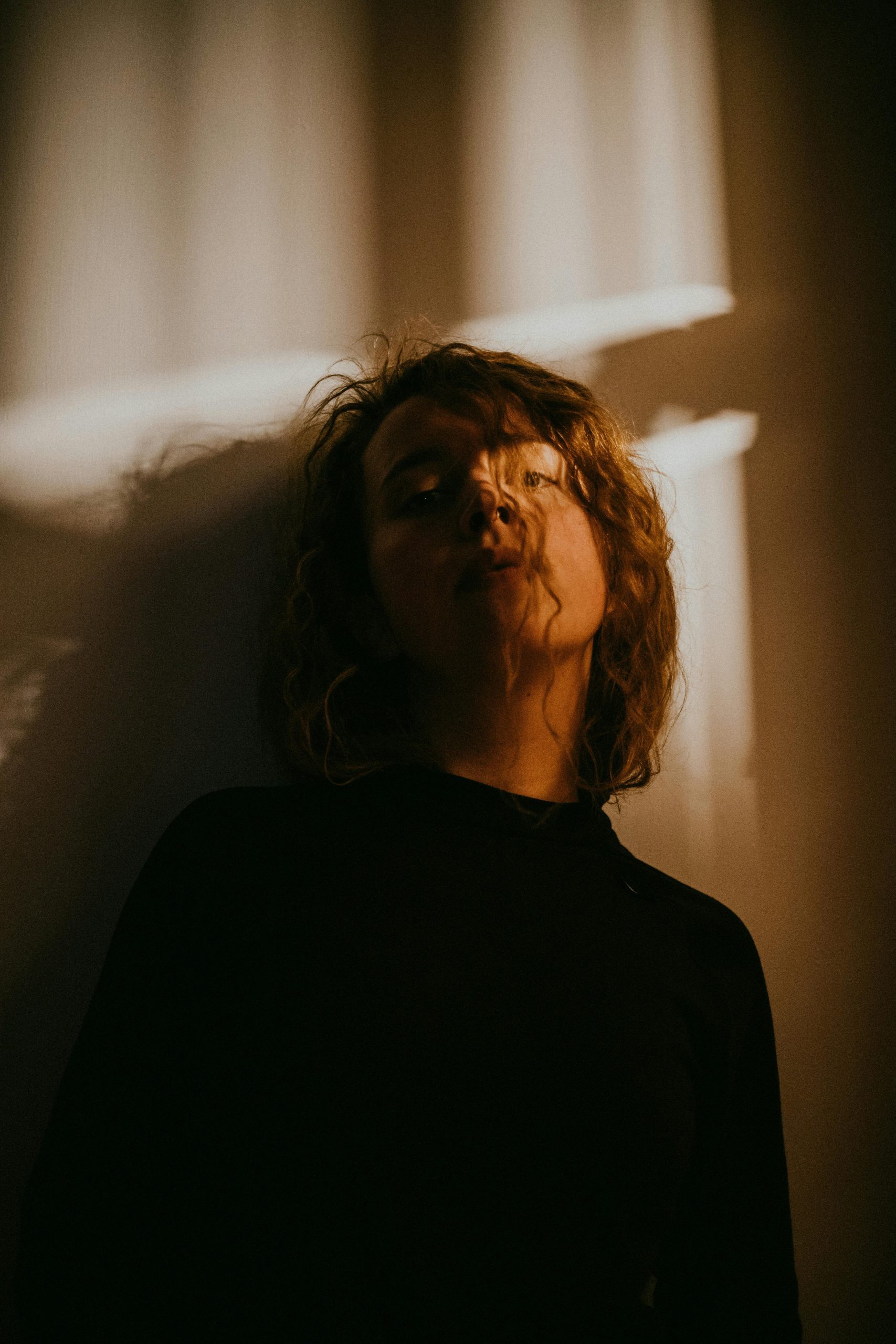 Artistic Portrait Of A Woman In Shadows, Creating A Mysterious Atmosphere Indoors.